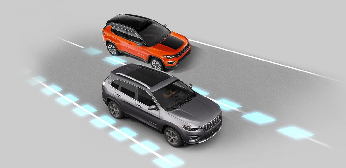 Система мониторинга "слепых" зон постоянно контролирует пространство между вашим Jeep® Cherokee и другими автомобилями. С помощью двух радарных датчиков система может обнаружить автомобиль, движущийся в одной из двух "слепых" зон, которые не видны в зеркалах заднего вида. В таком случае система подает вам предупреждающие звуковые сигналы и подает визуальный сигнал на наружном зеркале заднего вида.